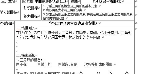 在我们的生活中几乎随处可见三角形。它简单,有趣,也十分有用。三角形可以帮助我们更好认识周围世界,解决很多的实际问题.
