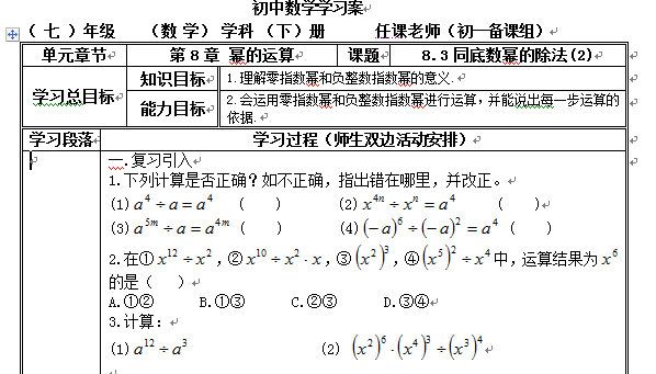 8.3 同底数幂的除法(2)