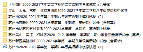 苏州市2020-2021学年第二学期初二英语期中试卷(9份含答案)