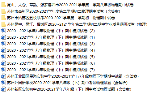 苏州市2020-2021学年第二学期初二物理期中试卷(12份含答案)