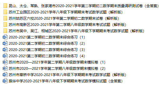 苏州市2020-2021学年第二学期八年级数学期末试卷(13份,含答案)